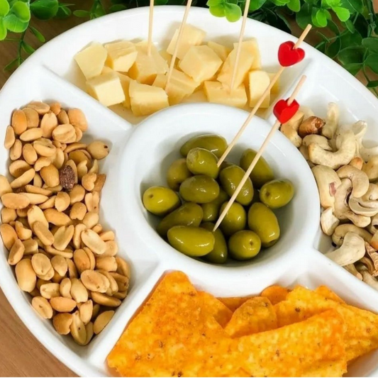 Petisqueira Branca Redonda com 5 Divisões Le Chefe 28 cm