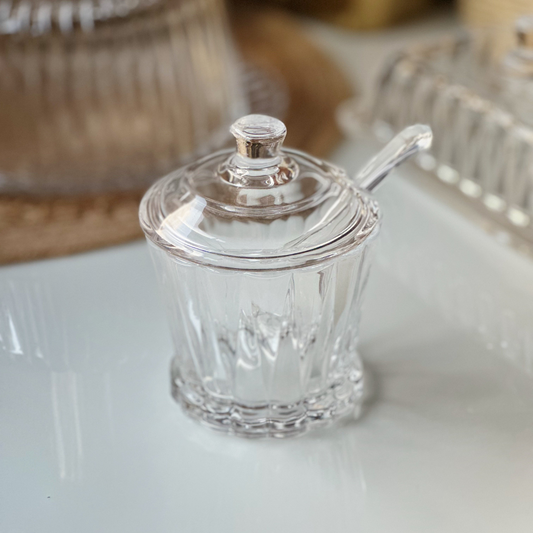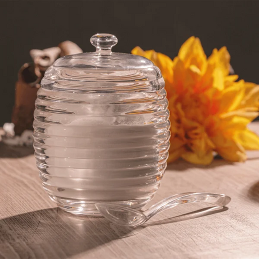Açucareiro de Cristal de Chumbo com Colher e Tampa Colmeia