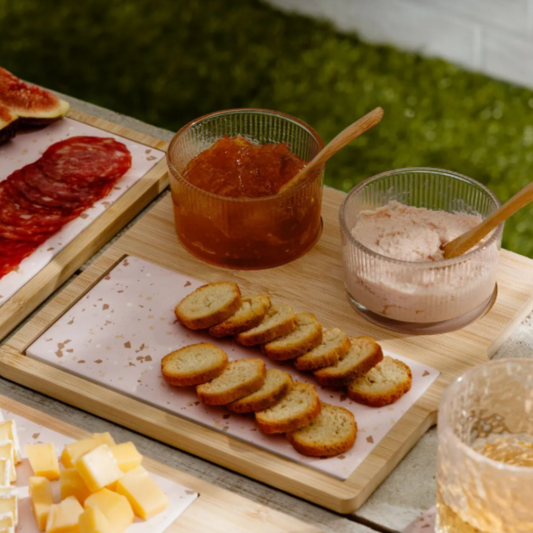 Conjunto 6 Peças - Pestiqueiras, Bandeja de Bambu e Tábua Terrazo