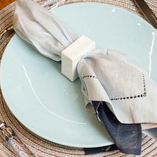 Conjunto 6 Anéis Quadrados para Guardanapo Bisotê Branco