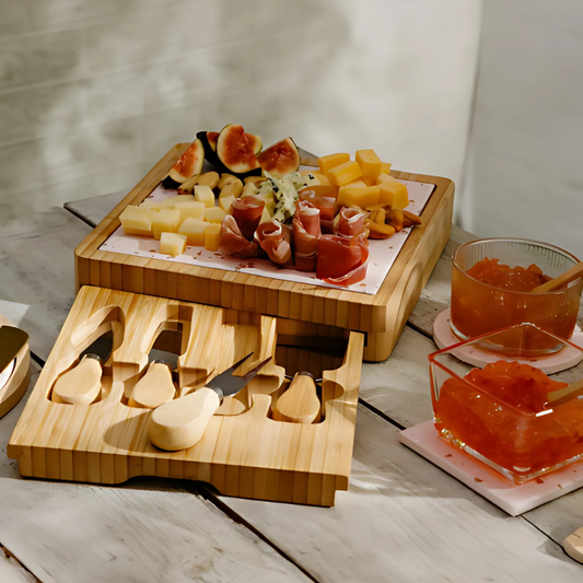 Conjunto para Queijo - Bandeija de Bambu e Tábua Terrazo