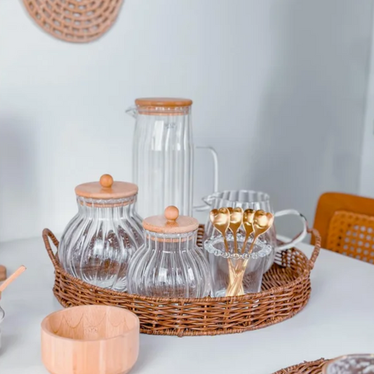 Bandeja de Bambu com Vidro Pequena