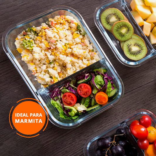 Pote de Vidro Hermético com Divisória Retangular 1040ml