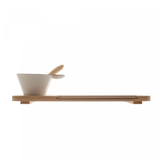Tábua de Petisco com Molheiras e Colheres de Bambu