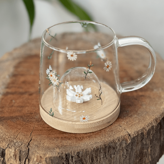 Caneca de Vidro com Pires de Bambu