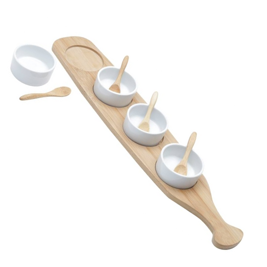 Tábua de Petisco com Molheiras e Colheres de Bambu