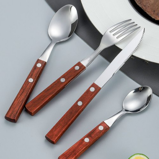 Jogo Colher de Sopa Inox com Cabo em Madeira 6 Peças