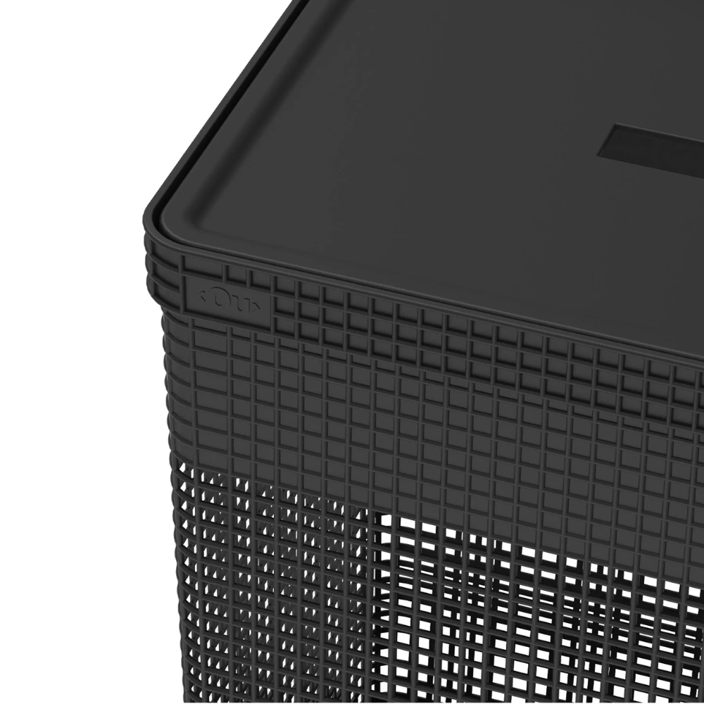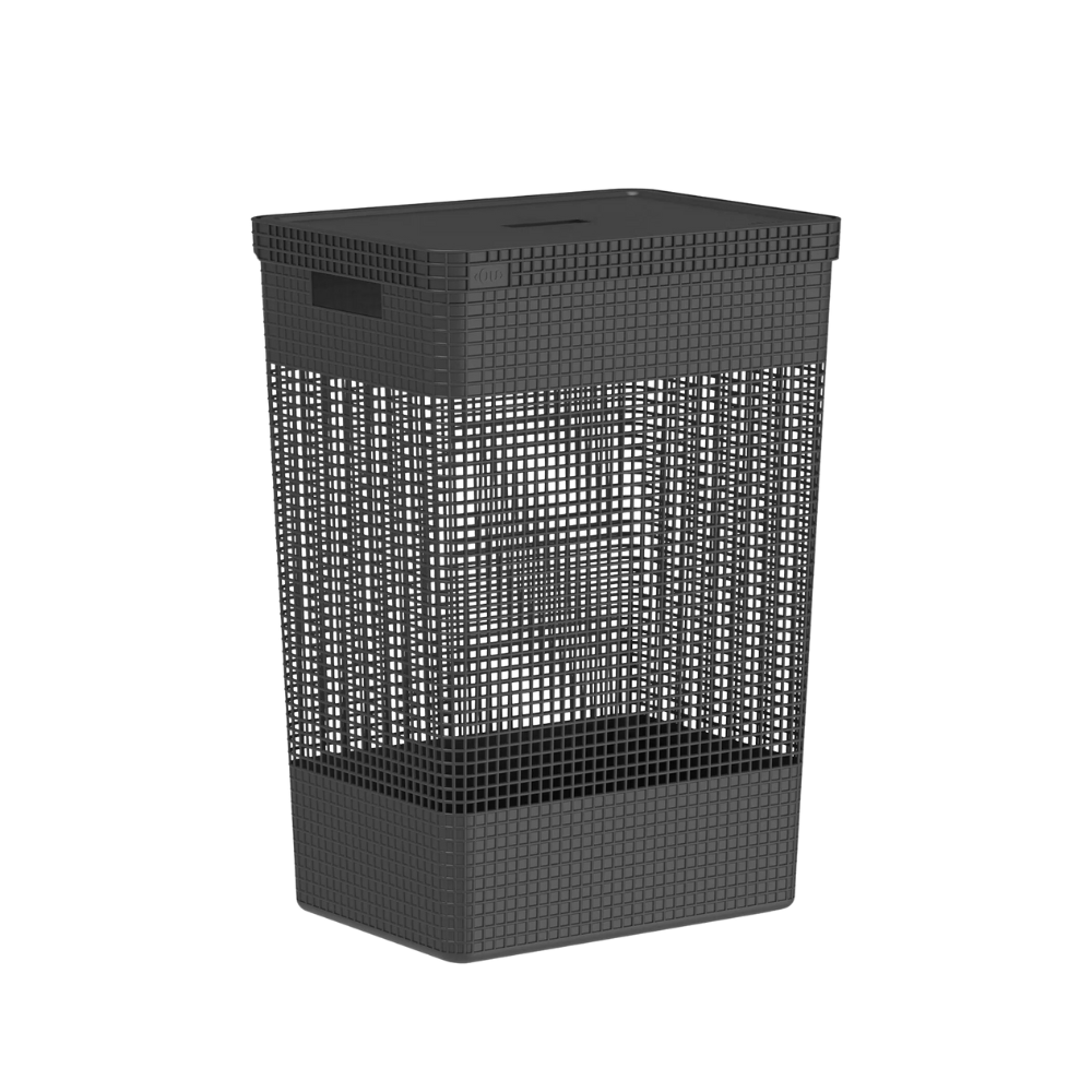 Cesto de Roupas Grid Preto com Tampa 49 L