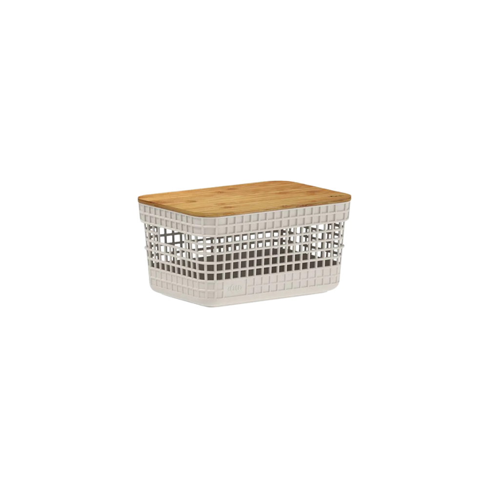 Cesto Organizador Grid Bege com Tampa De Bambu 2,5 L
