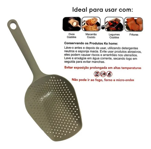 Tenha mais praticidade na sua cozinha com esta Colher Vazada Grande. Ideal para macarrão, ovo cozido, legumes, frituras, entre outros.