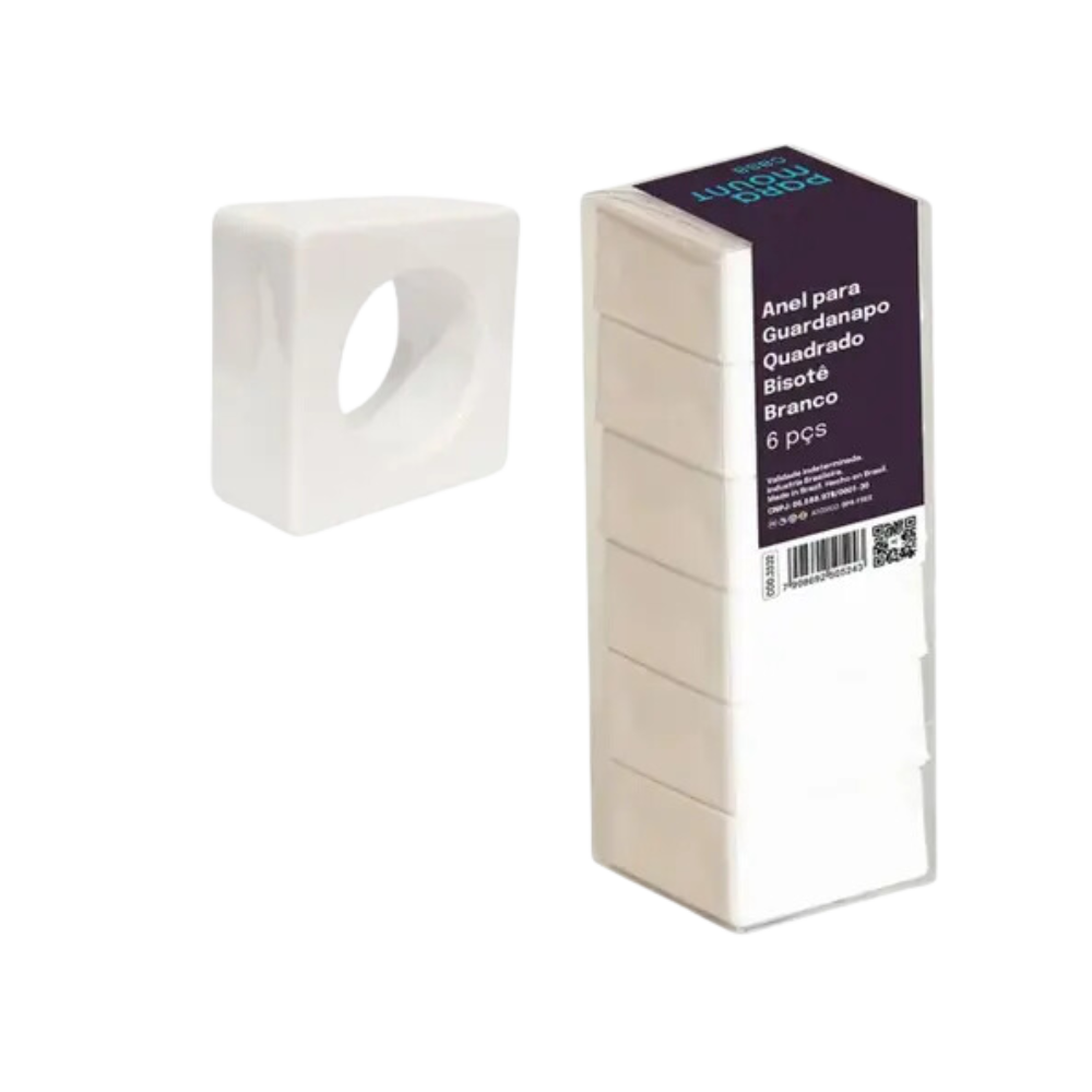 Este elegante conjunto de 6 anéis de guardanapo da linha Bisotê é a escolha perfeita para compor uma mesa sofisticada e charmosa. Com design quadrado e acabamento impecável na cor branca, cada anel destaca-se pela sua simplicidade moderna e refinada, ideal para ocasiões especiais ou para dar um toque de elegância ao dia a dia.