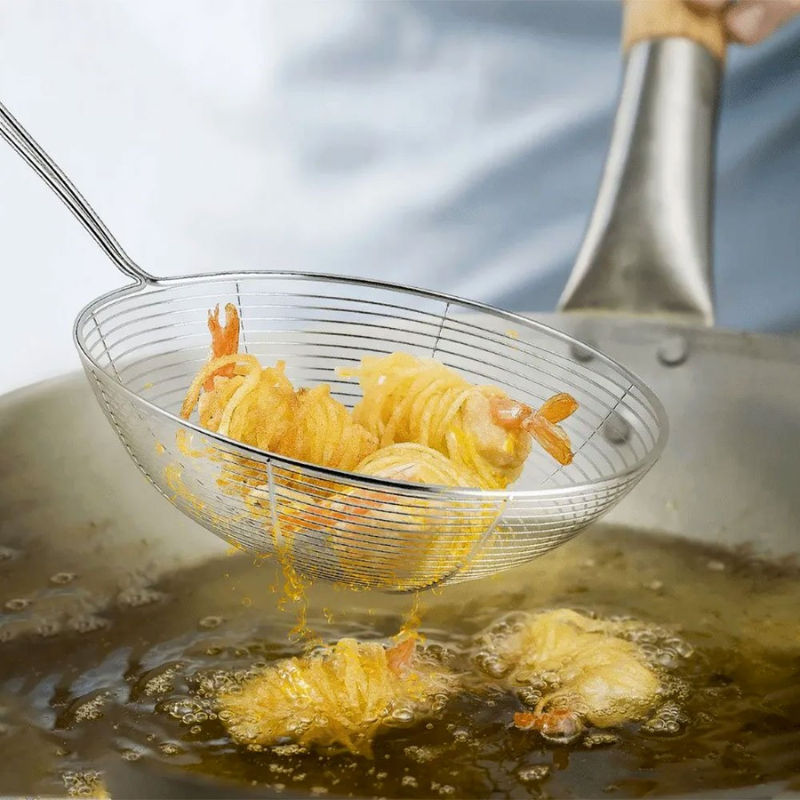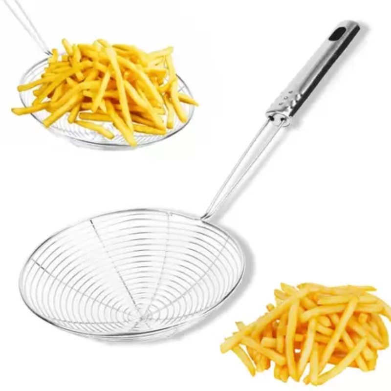 A escumadeira para fritura em inox é uma ferramenta indispensável na cozinha, projetada para facilitar o processo de fritura. Fabricada em aço inoxidável de alta qualidade, oferece durabilidade e resistência. Seu design funcional permite a remoção fácil dos alimentos fritos, enquanto o cabo longo proporciona conforto e segurança durante o uso. Fácil de limpar e resistente à corrosão, é uma escolha prática e conveniente para qualquer cozinha.