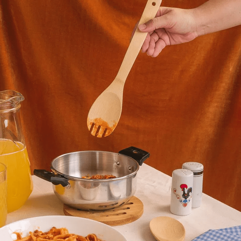 Este Garfo de Bambu é multiuso, pois serve para misturar comida na panela e raspar o tacho e o fundo da tigela, evitando desperdício. Não arranha e é higiênica, pois sua superfície lisa não retém cheiro e não prolifera bactérias, facilitando na hora da limpeza.