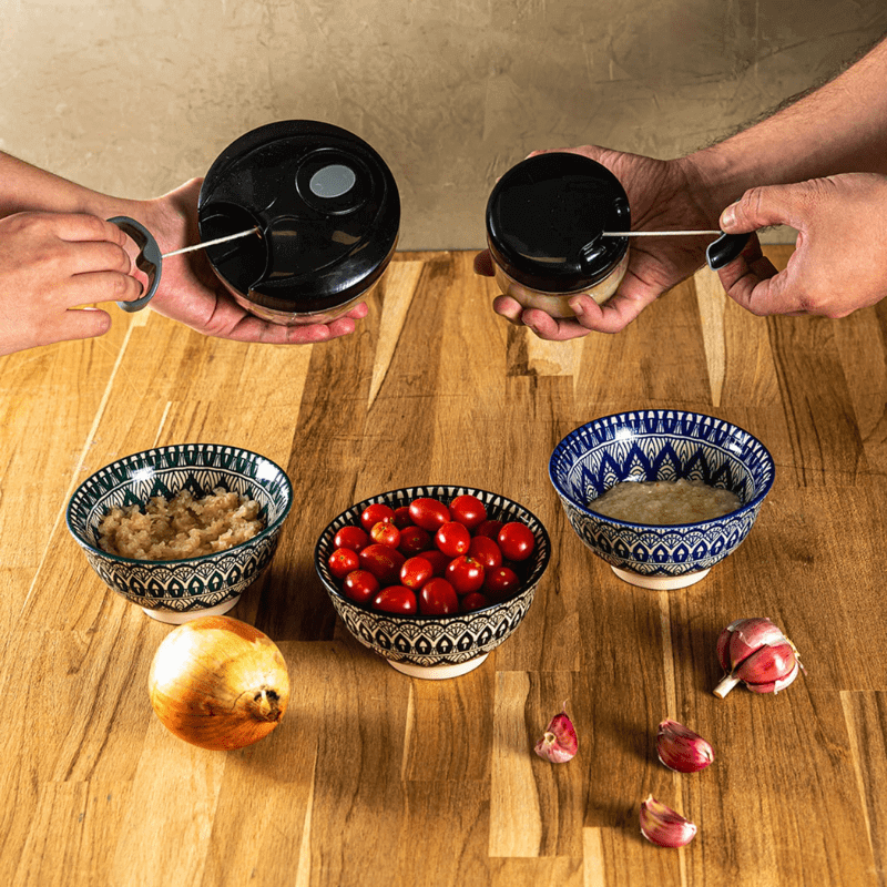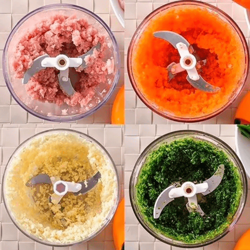 Contém: Mini Processador de Alimentos Manual com 2 Lâminas