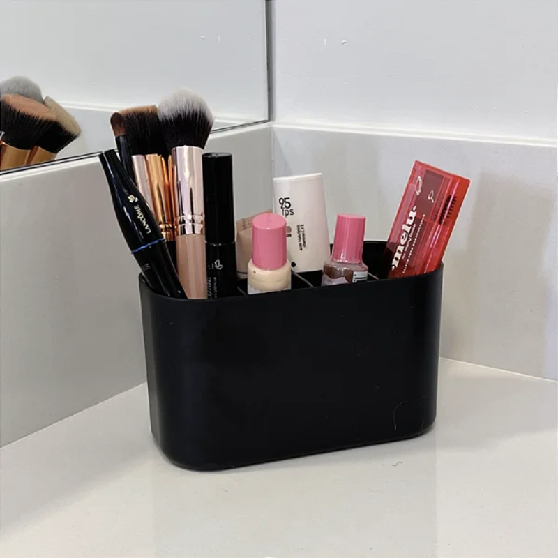 O Organizador de Bancada Bold proporciona organização para a bancada do banheiro ou penteadeira, facilitando sua rotina de beleza e higiene pessoal. Possui 6 compartimentos de diferentes tamanhos para maquiagens, cosméticos e produtos de skincare.