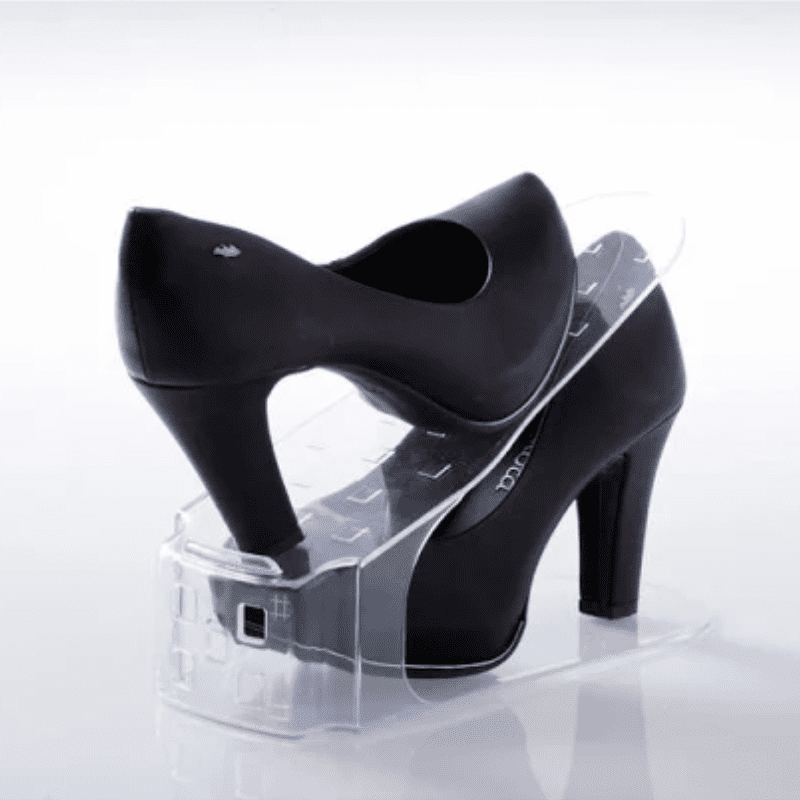 Organize seus sapatos de forma a ganhar mais espaço e ficar mais visível, evitando amontoar e amassar seus calçados.