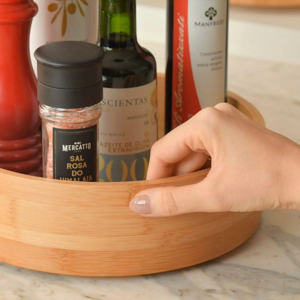 A bandeja Giratória de Bambu é a solução perfeita para organizar e facilitar o acesso a temperos, molhos, condimentos e utensílios na sua cozinha. Feita de bambu natural, um material resistente e sustentável, ela combina funcionalidade com um design sofisticado. Sua base giratória permite acesso rápido e prático a todos os itens, tornando o dia a dia mais organizado e eficiente. Ideal para bancadas, despensas e mesas, trazendo charme e praticidade para qualquer ambiente!