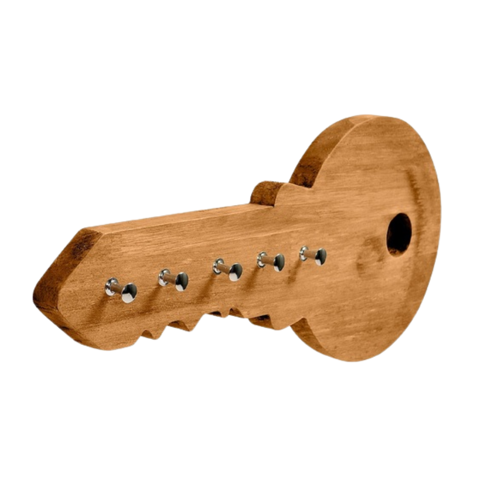 Mantenha suas chaves organizadas e dê um toque criativo à decoração da sua casa com o Porta-Chaves de Madeira em Formato de Chave. Ideal para halls de entrada, este item une funcionalidade e design único para transformar pequenos detalhes do seu ambiente.
