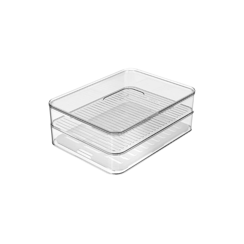 O Porta Frios Duplo Clear Fresh é o novo padrão de transparência para quem procura acondicionar e servir frios de forma simples e prática, promovendo beleza e funcionalidade para o dia a dia e ocasiões especiais. Empilhe, encaixe e enxergue facilmente os frios armazenados, mantendo tudo em ordem. Com design minimalista, ele combina com todos os tipos de cozinha, trazendo harmonização entre cor e transparência para facilitar a visualização dos itens sobre a mesa. Outro diferencial da linha está na sua superfície interna que possui uma grade e ranhuras, além de uma base removível que evitam o contato dos frios diretamente na superfície do produto.