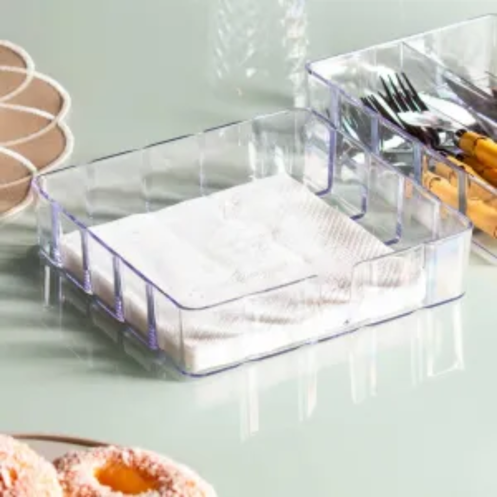 O porta-guardanapo de acrílico da linha Bisotê é uma peça que une funcionalidade e sofisticação em um design único. Com suas bordas facetadas, inspiradas no corte bisotê, ele traz um toque de elegância à mesa, destacando-se pela transparência que combina facilmente com qualquer estilo de decoração. Feito em acrílico de alta qualidade, é durável e resistente, além de ser leve e prático de manusear.