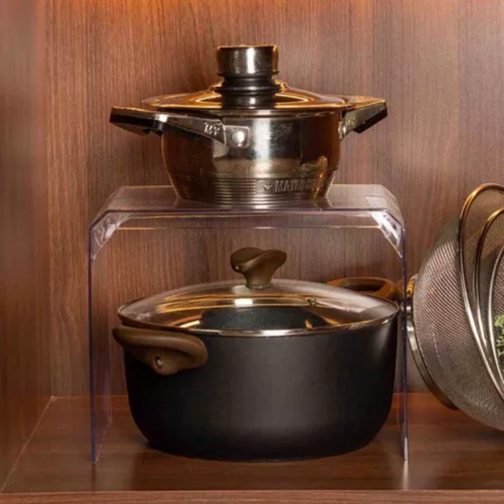 Este suporte multiuso de acrílico é a solução perfeita para maximizar o espaço e organizar diversos itens com elegância e praticidade. Com um design clean e minimalista, ele se adapta a diferentes ambientes, como cozinha, escritório, banheiro ou closet, proporcionando uma organização eficiente e visualmente agradável. Fabricado em acrílico transparente de alta qualidade, o suporte é resistente e durável, ideal para empilhar pratos, organizar livros, eletrônicos ou outros objetos.