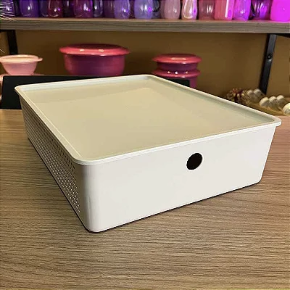 As Tampas para Cestos Flow aprimoram a eficiência e organização da casa. Complementando os cestos organizadores, oferecem uma solução completa para manter os itens protegidos e ocultos.